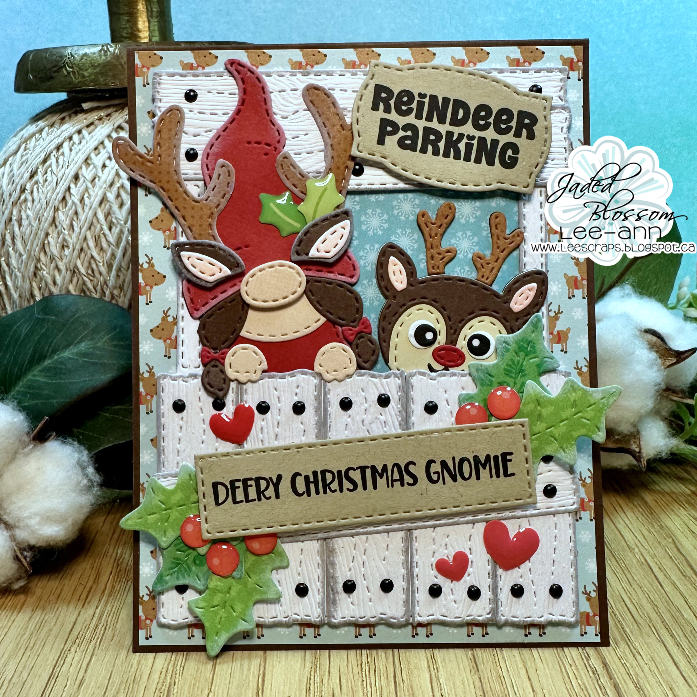 Hi everyone...it's day 2 of the Jaded Blossom October 2023 Release and I have another fun Christmas card to share. I made this one using our new North Pole Sign dies, Candy Cane Lane stamp set, Nutcrackin' Christmas stamp set and the Gnome dies Christmas Add Ons 3. Gotta have them! Thanks for stopping by...Lee-Ann :)